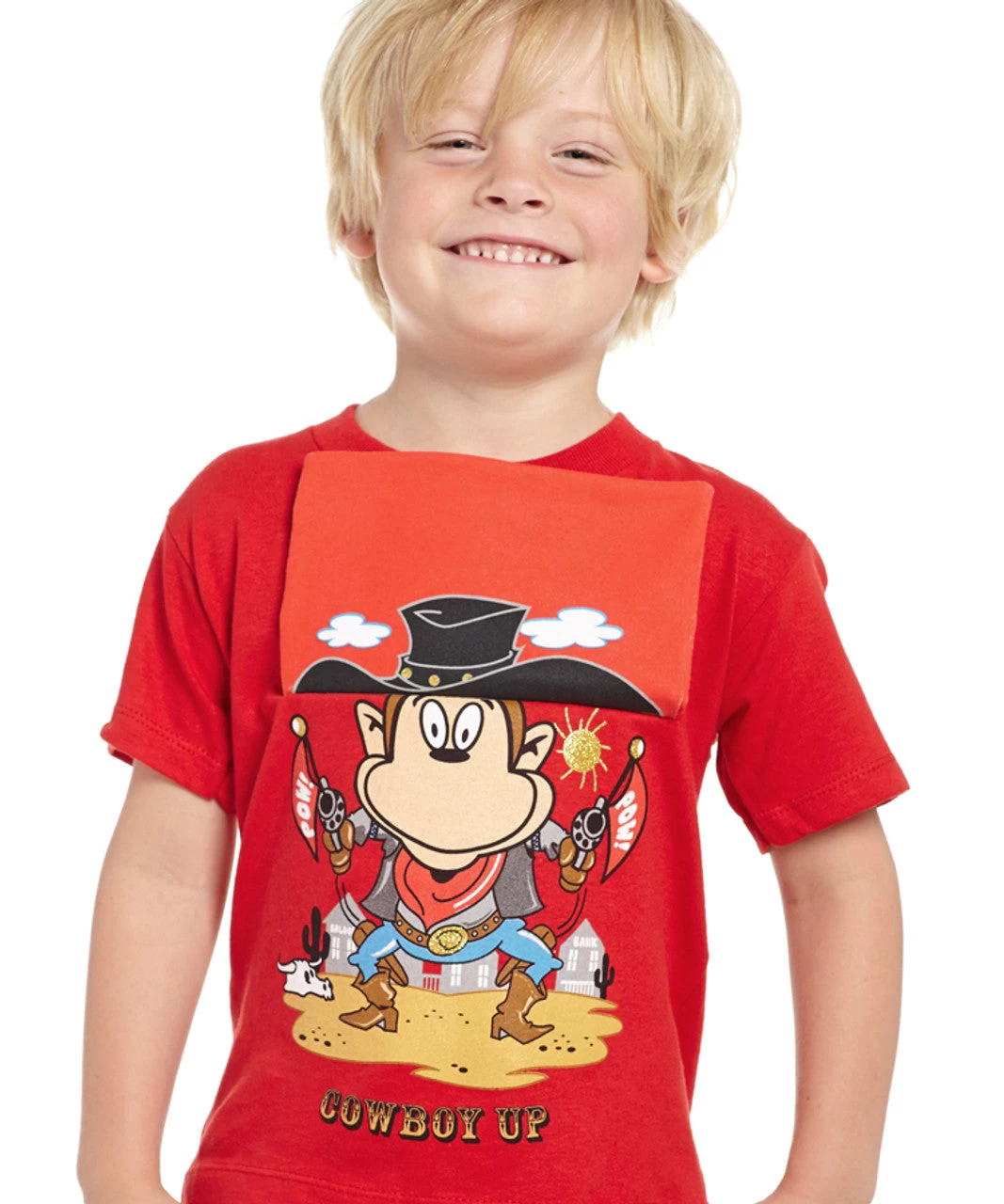 Cowboy Up Action Flap Cartoon Toddler T-shirt – Red