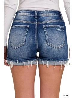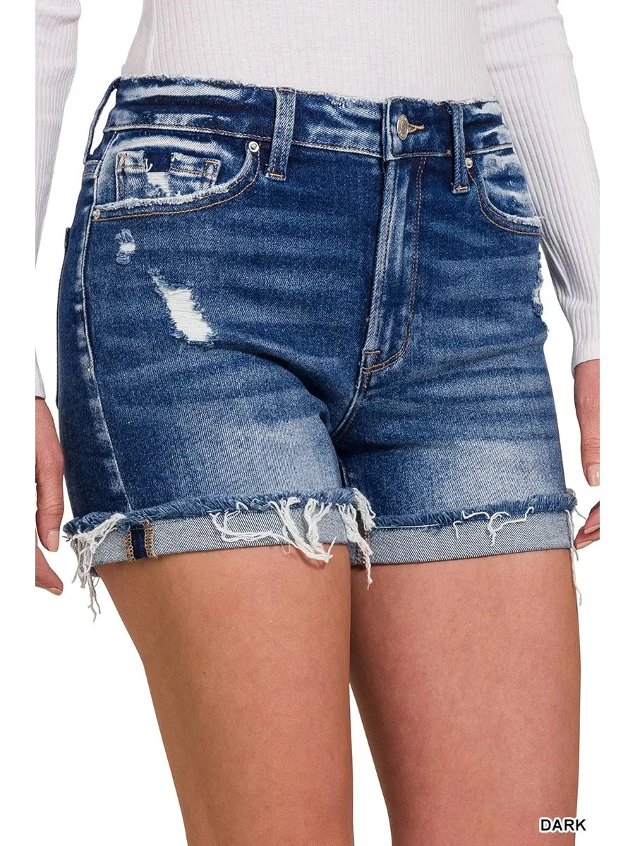 Distressed Cuffed Raw Hem Shorts – Denim