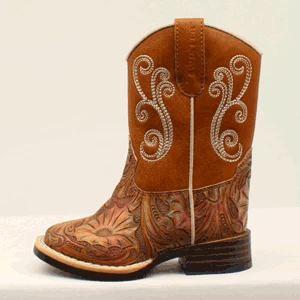 These Twister boots by M&F Western Products will be what your little cowpoke grabs every day to wear whether shes going to the barn or just outside to play. These great boots feature an ivory swirl stitched design and piping and a multi colored floral embossed vamp. Comfortable and dry with moisture management lining. Easy on/off with side zipper. Boot pulls make them look just like moms boots.
