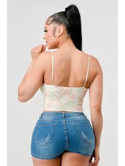 Floral Sweetheart Ruffled Hook Cami Bustier Top Pink/Green