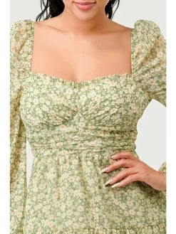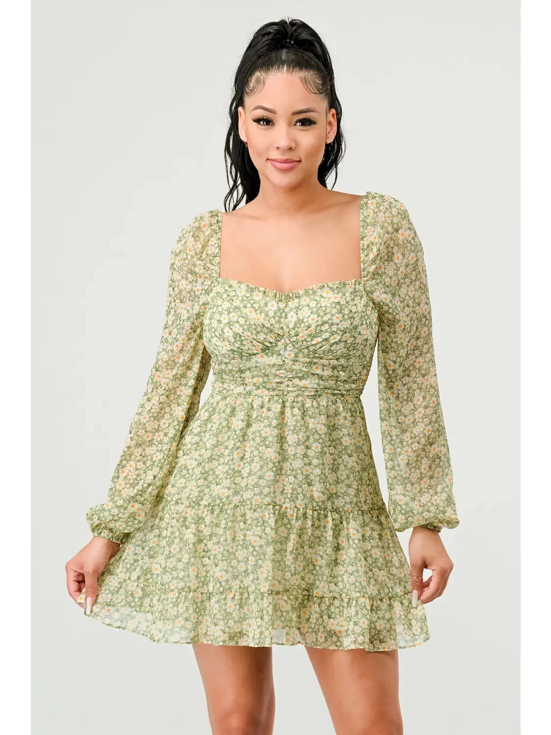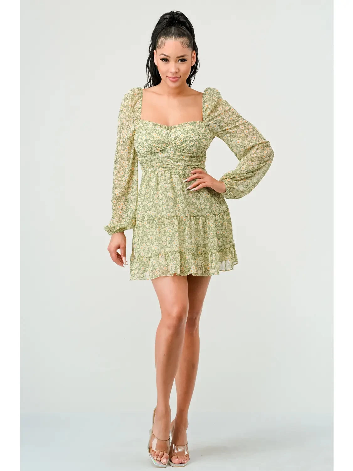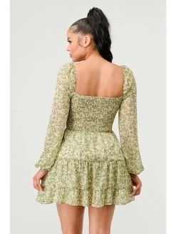 Floral Sweetheart Ruffled Smocked Mini Dress – Sage