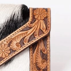 Hand Tooled Saddle Leather Cowhide Upcycle Canvas Wallet