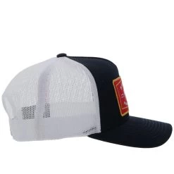 This classic five-panel high-profile cap from Rank Stock Rodeo Company features a black body and contrasting white mesh, complemented by a bright yellow and red patch. With an adjustable one-size-fits-all fit and curved bill, it is the perfect choice for any occasion.