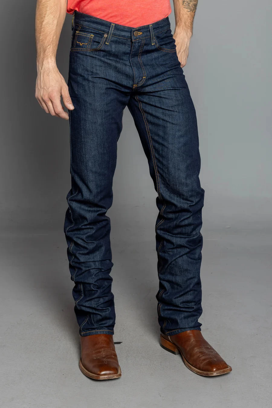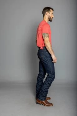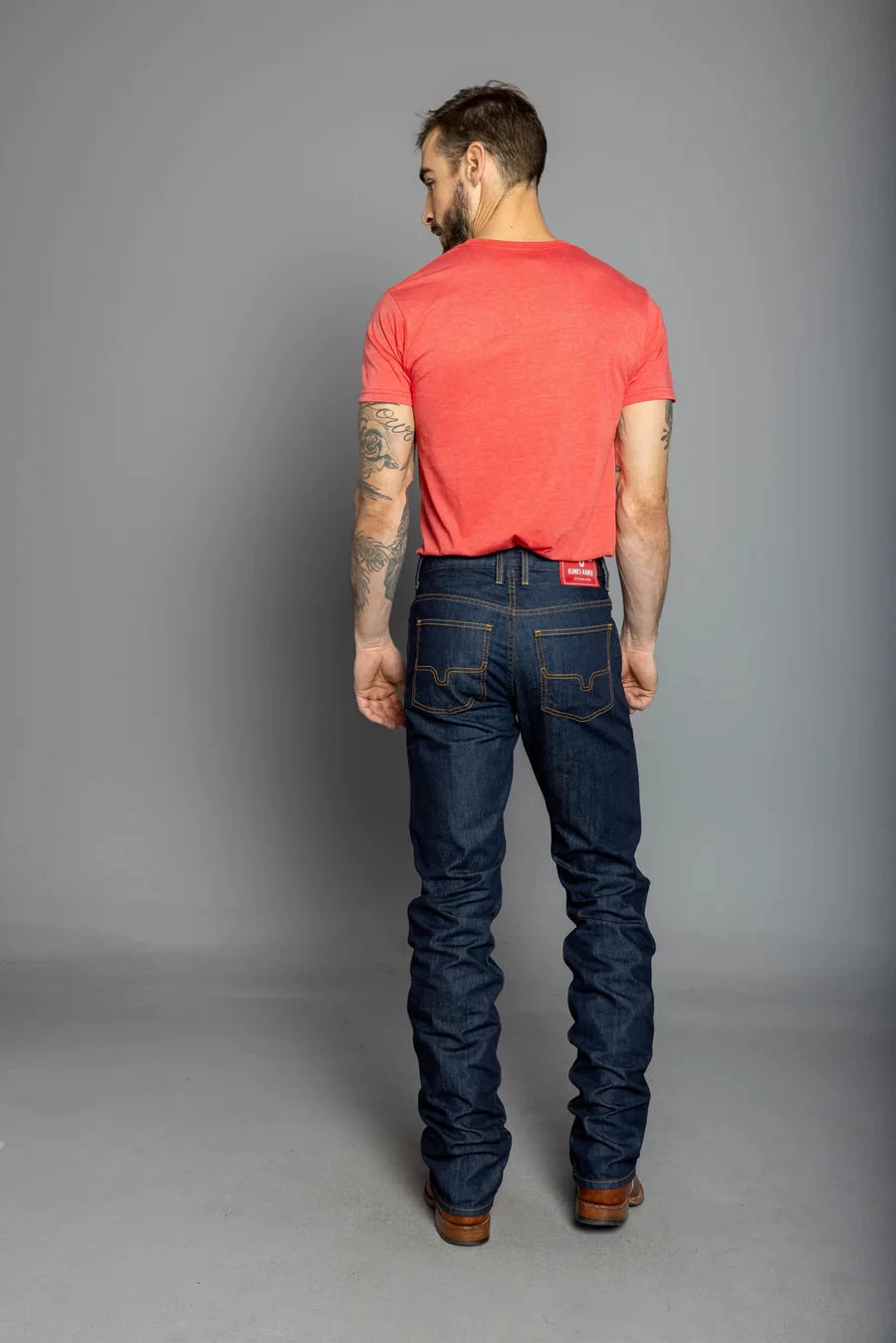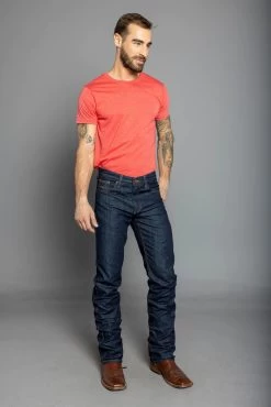 A classic cut men’s jean, the Cal features 100% cotton 11.5 oz denim in a higher rise. The Cal has a straight fit and integrated knife pocket, making it the perfect jean for traditional ranch work and the office alike.