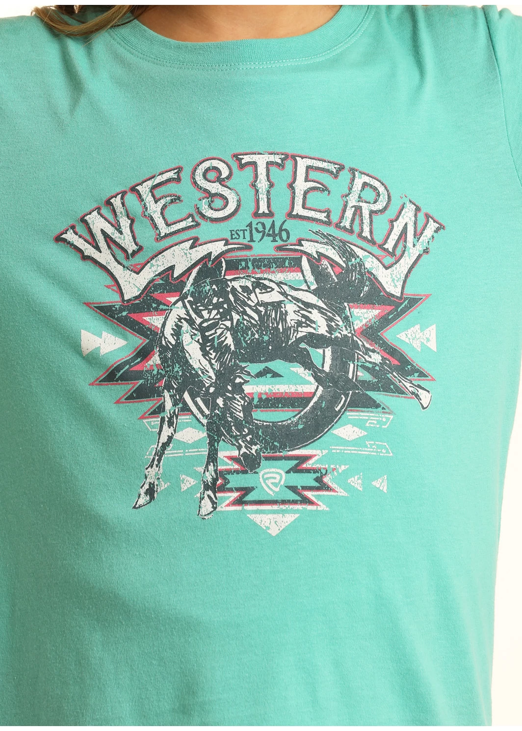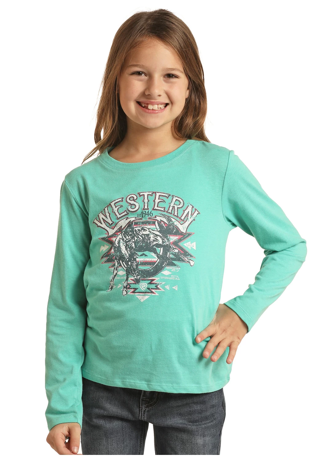 Rock & Roll Basic Long Sleeve Tee Mint Green with White Graphic