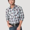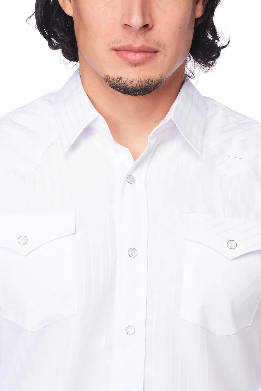 Men’s long sleeve western cotton/poly yarn dyed plain shirts with snap buttons.