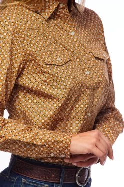 Rodeo Women Long Sleeve Brwon Snap Western Shirt