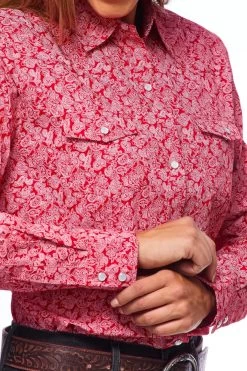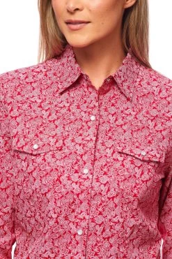 Rodeo Women Long Sleeve Red Paisley Snap Western Shirt