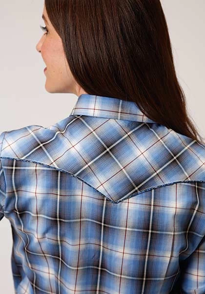 Roper Amarillo Plaid Snap Storm Blue Ombre
