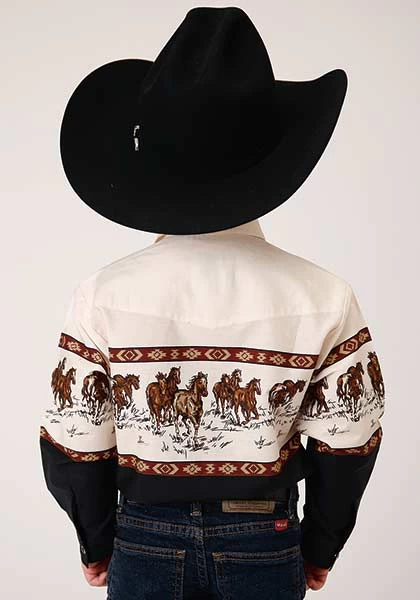 Be the first to review “Roper Boys Snap Running Horse Border Print Brown” Cancel reply