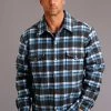 Roper Men’s Shirt Snap Woven Plaid Forest And Navy