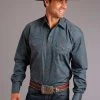 Roper Men’s Long Sleeve Western Shirt Smile Pocket No Arrow Points Applique on Front – Blue/Brown