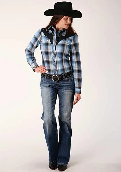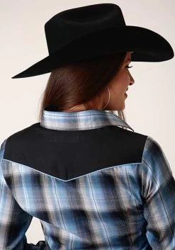 Roper Women’s Snap Fancy Applique Blue And Navy Plaid Shirt