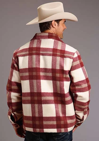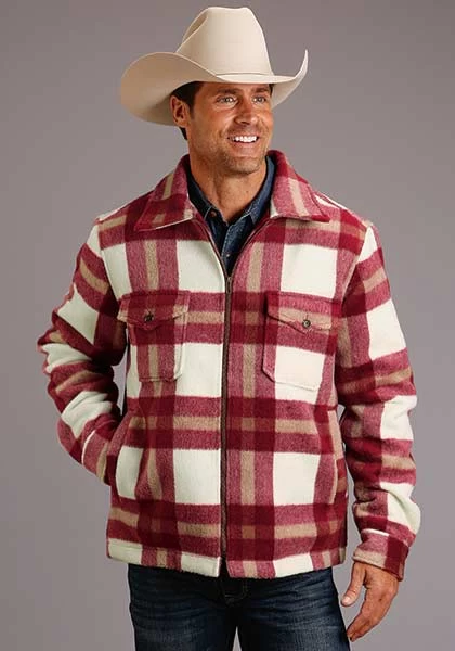 Stetson Mens Outwear Lined Jacket Plaid Wool Blend Red