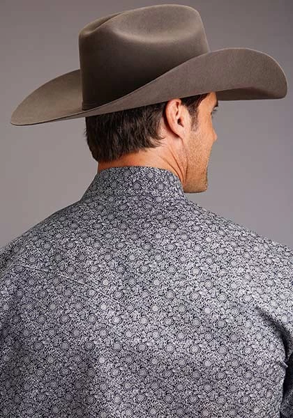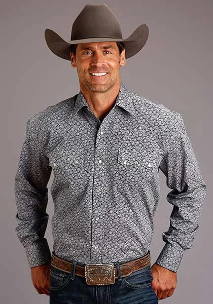 Allover Print On Cotton Poplin * 1 Pt Curved Back Yoke * Denim Inside Trim * 2 Pt Curved Pckt Flaps * Stetson “S” Emb * “Stetson” Emb On Rt Sleeve Placket * 3 Snap Cuff * Classic Snap Front Featuring Pearl Logo Snaps
