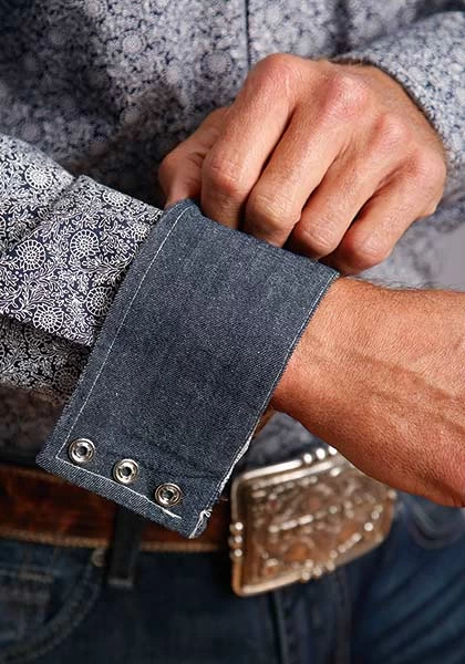 Stetson Mens Snap 2 Pocket Vintage Vine Blue