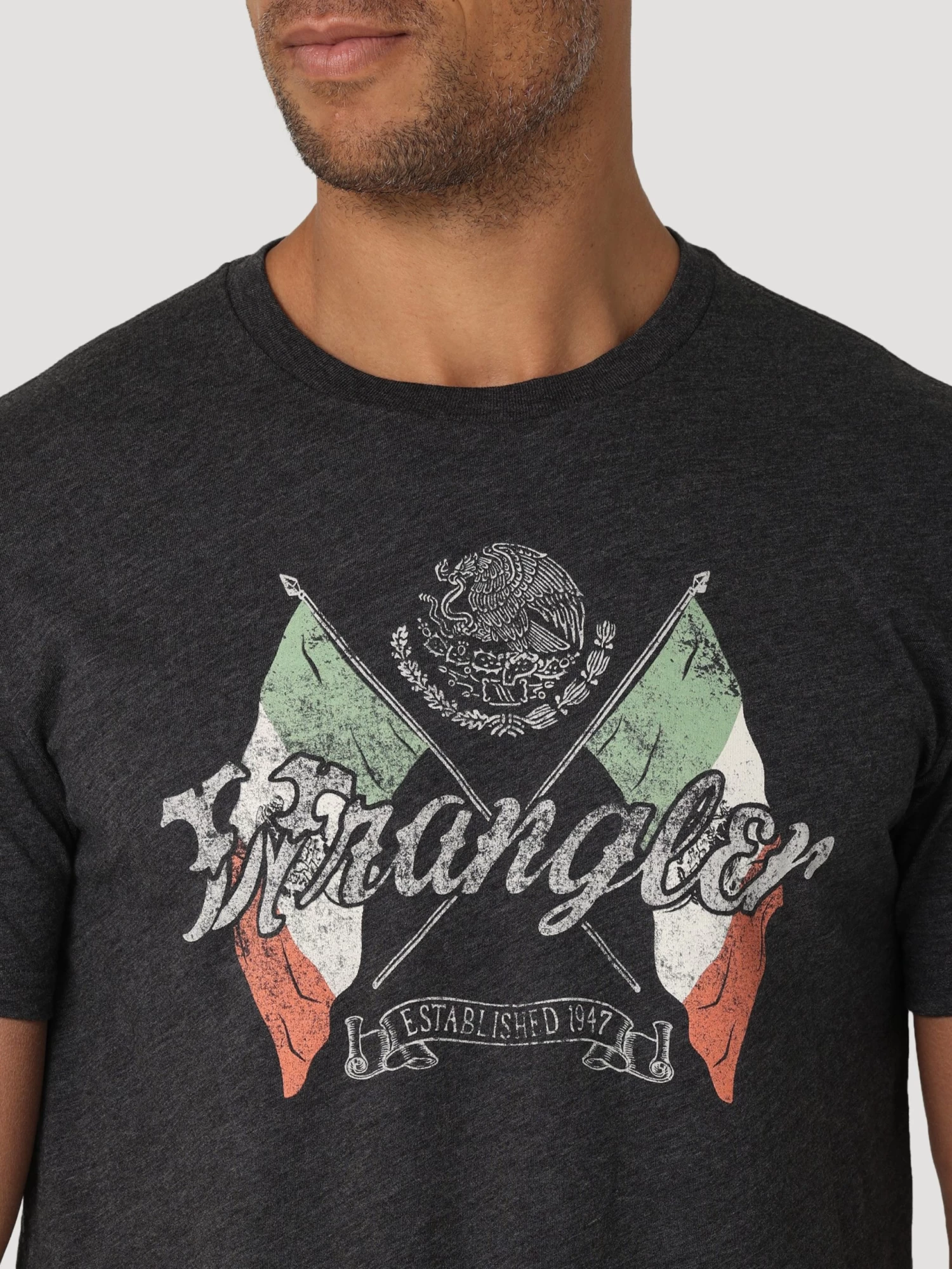 Wrangler Mens Mexican Flag Graphic T-shirt – Caviar Heather