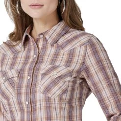 Wrangler Women’s Retro Plaid Western Snap – Pink Mauve